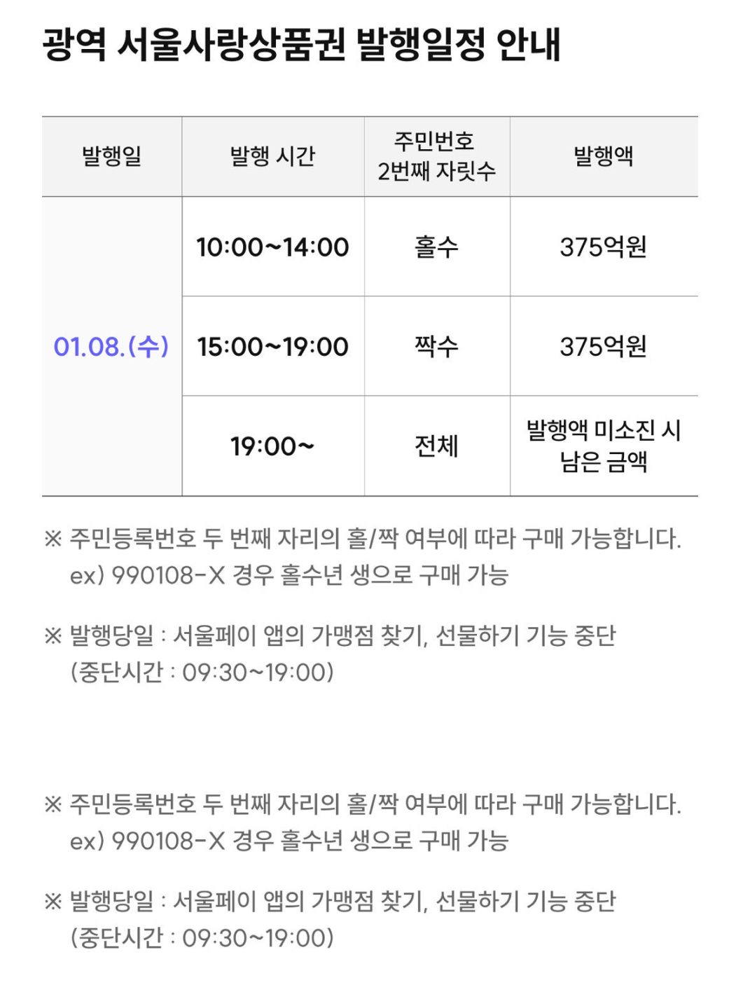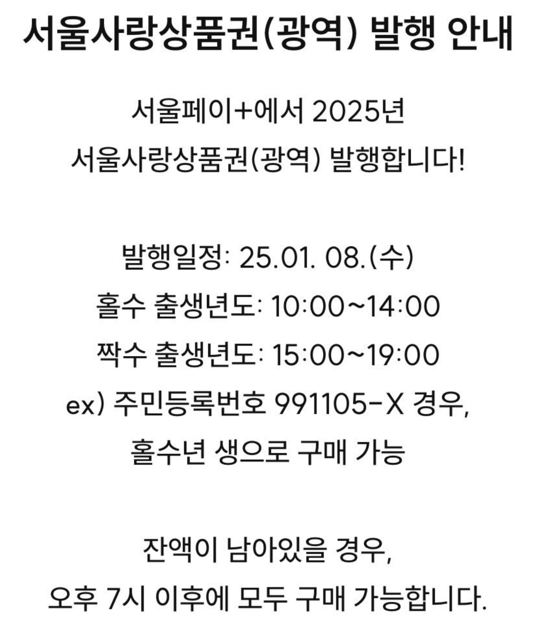 - 홀수 출생 연도: 오전 10시부터 오후 2시까지 구매 가능.