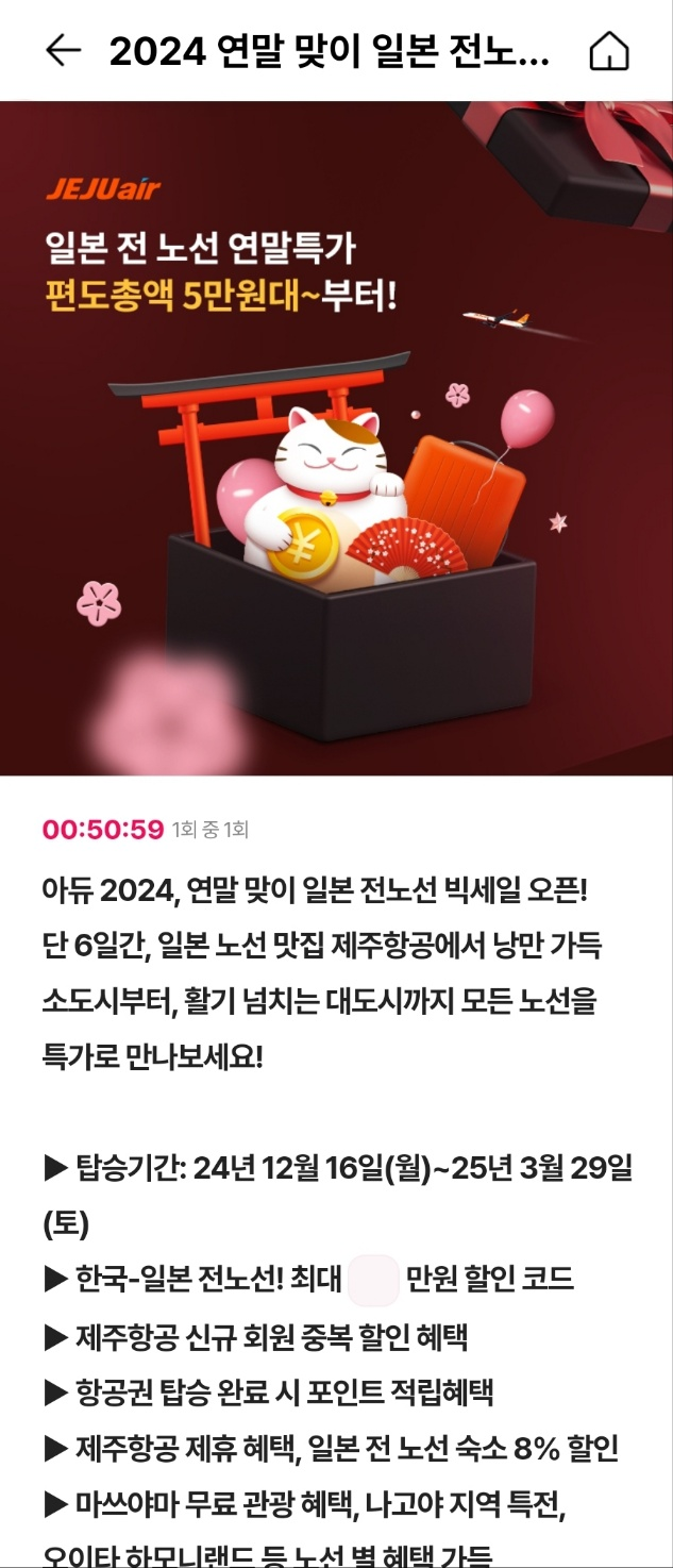 오전 11시 – 2024 연말 맞이 일본 전노선 특가