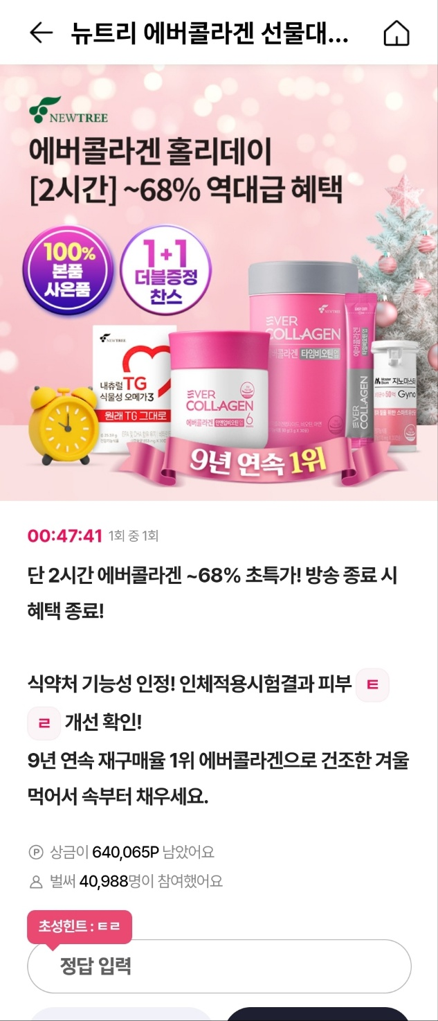 - 문제: 뉴트리 에버콜라겐의 인체적용시험 결과, 피부 ○○ 개선 확인!