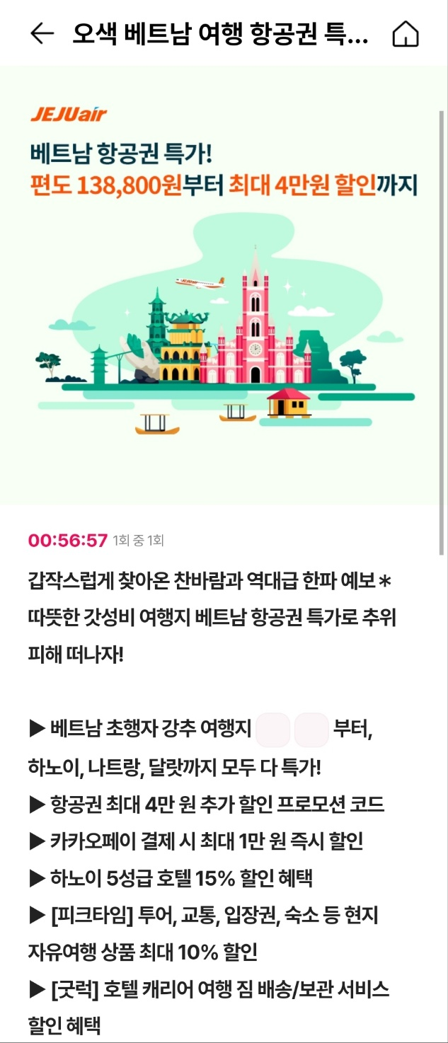 현재 베트남 여행과 관련된 다양한 프로모션 혜택도 함께 제공됩니다.